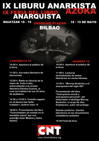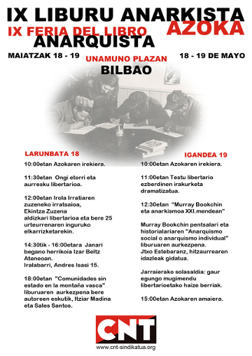 Este sábado 18, a las 12h, nos acercaremos hasta la feria del libro anarquista de Bilbao para hacer una retransmisión en directo durante toda la mañana.