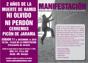 El próximo sábado 11 de diciembre de 2010 se cumplirá el segundo aniversario de la muerte de Hamid, un niño de 13 años que apareció muerto cuando se encontraba en aislamiento en el centro de menores de Picón del Jarama gestionado por la Fundación 0’Belen.