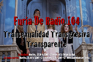 Bueno muchachas y muchachos y demás, vamos a a meternos con un tema que no va a dejar indiferente a nadie. Dos programas sobre la transexualidad, por supuesto con el protagonismo y testimonios de personas transexuales. Pero no personas cualquiera, habrá artistas, trabajadoras y trabajadores sexuales, activistas... gente muy especial no por su transexualidad, sino por su calidad humana y su tremendo enfrentamiento con la sociedad palurda en la que vivimos que requiere una valentía que se sale de lo común.