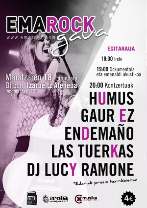 Emarock gaua antolatu dugu. Maiatzak18. Izar beltzen Bilbon. 19etan dokumentala+emanaldi akustikoa 20etan Kontzertuak: Humus, Endemaño, Gaur ez eta Las tuerkas eta gero DJ Lucy Ramones 3arte. Sarrera 4€ eta prezio herrikoiak edarietan.