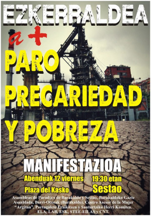 Estos días se han hecho públicos los datos de desempleo. La Margen Izquierda vuelve a estar en cabeza de los mismos. Así, el 23% de la población activa está en paro, 21.500 personas; y el 68% no perciben ningún tipo de subsidio o prestación. Sumado a la realidad de continuos recortes y aumento del desempleo es necesario impulsar un muro social en la Margen Izquierda contra estas situaciones de incremento de la precariedad y pobreza, exigiendo la defensa de los derechos sociales y la dignidad que nos corresponde frente a empresarios, banqueros y políticos corruptos.