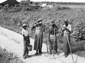El blues es una expresión musical que llegó a los Estados Unidos de América del Norte a través de los esclavos que provenían principalmente de la costa occidental de África. Este tráfico de esclavos se produjo ininterrumpidamente desde comienzos del siglo XVII hasta 1812, año en el que quedó prohibido su comercio. Sin embargo, la esclavitud no se aboliría hasta 1863. Los esclavos viajaban en los barcos encadenados, por lo que se conjetura que la única forma musical que podían interpretar era la vocal, aunque pudiera ser que algún instrumento llegara con ellos en su viaje.
