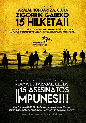 2014ko otsailaren 6ko goizean, Ceutako Tarajal hondartzan, hainbat afrikarrek muga zeharkatzeko saiakera egin zuten, Marruekosetik Estatu españolean sartzeko asmoz. Mediterraneo kostaldeak, bi herrialde hauen arteko muga topatzen du Tarajal hondartzako espigoian; eta espigoia pasatzeko, itsasoan murgildu eta igeri eginez egin zuten saiakera.