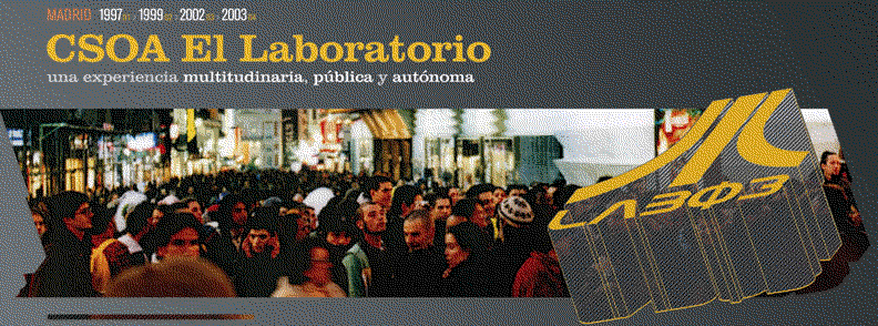 | Queridos compa�eros/as: Mucho �nimo con este proceso injusto pues TODOS hemos traspasado la puerta del Laboratorio para escuchar un debate, ver una exposici�n, tomar unas ca�as con los amigos/as o participar en un grupo de trabajo. EL MEJOR ESPACIO ES EL QUE SE USA. | |