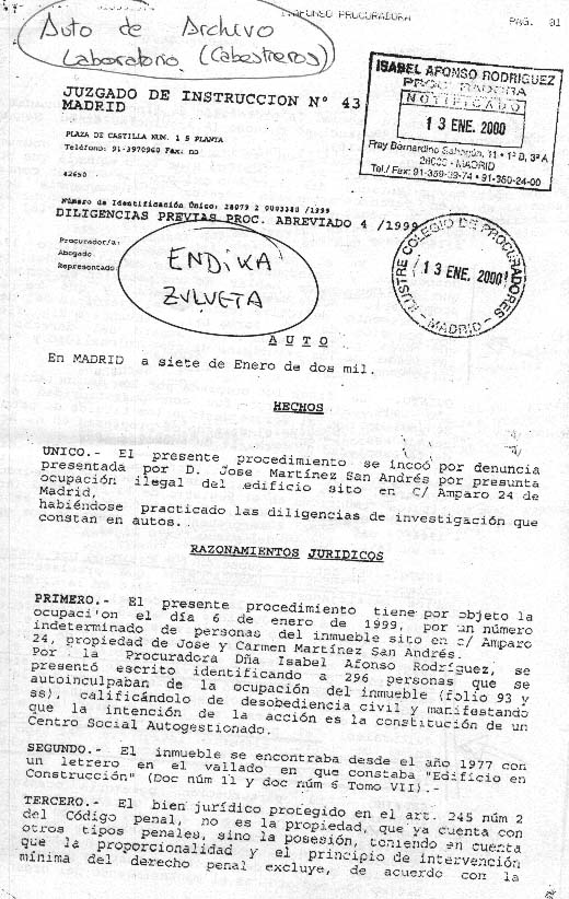 Aquí está una reproducción facsímil de las 3 hojas del auto de archivo
